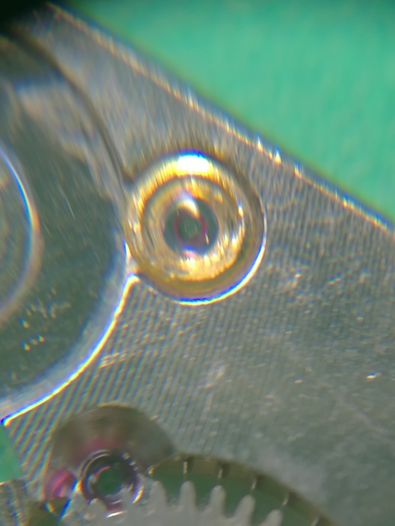 Cleaning the jewels, they must be spot free. If they are not and when oiling, the oil will not stay in the middle of the cap jewel by surface tension. It will float out.
